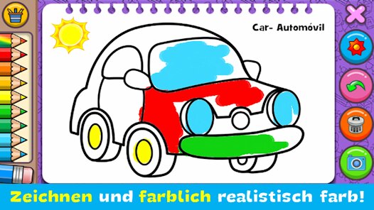 - Intuitive Farbauswahl 🎨: Ein einfaches Tap-System, bei dem Kinder eine Farbe wählen und dann direkt auf die gewünschte Fläche im Bild tippen, um sie auszufüllen – perfekt für kleine Hände und aufkeimende motorische Fähigkeiten.