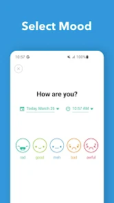 Daylio harnesses the power of mood tracking 📊 and journaling without requiring users to type a single word. The app impresses with its minimalist approach, employing user-friendly interfaces and a rich selection of icons and moods to capture your daily experiences quickly. Developed by Habitics, Daylio taps into the growing awareness of mental health's importance and offers users a snapshot of their emotional trends over time 📅. Its standout features include personalized entries, statistics, goal setting, and reminders.