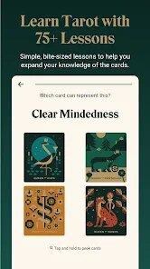 - 🎴 Interactive Learning Modules: The app provides structured, game-like lessons and quizzes that make memorizing card meanings and symbolism an engaging and effective process.