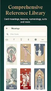 - 📚 Comprehensive Library: A vast built-in library offers in-depth descriptions for every card, including upright and reversed meanings, associated astrology, and numerology.