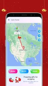 - Live Santa Tracker 🎅: The app's flagship feature is a real-time, animated map that shows Santa's journey on Christmas Eve, complete with location updates, estimated arrival times, and fun geographical tidbits.