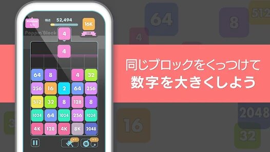 「数字パズル:ポッピンブロック」は、2048という数字合体パズルの基本ルールをベースに、FURYU Corporationが独自の「ポップ」な味付けを加えたスマホゲームです。同じ数字のブロックをスワイプで動かしてぶつけ合わせ、2から始まり2048、そしてそれ以上を目指して数字を大きくしていく、あのシンプルながら中毒性のある頭脳トレーニングがここにあります。シンプルな操作で誰でもすぐに遊べるため、通勤時間やちょっとしたスキマ時間を埋めたいカジュアルゲーマーや、パズルで頭をスッキリさせたい人にピッタリ。私が最初に興味を持ったのは、その明るくポップなビジュアルでした。2048系ゲームは数あれど、多くがシンプルすぎたり地味な色調だったりしますが、このゲームはタイトル通り「ポッピン」なブロックデザインと効果音が、遊んでいるだけでなんだか楽しい気分にさせてくれるんです。